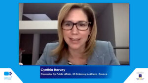 Σύντομο χαιρετισμό απηύθυνε, επίσης, η κα Cynthia Harvey, Διευθύντρια Δημοσίων Υποθέσεων στην Πρεσβεία των Η.Π.Α. στην Αθήνα, η οποία δήλωσε, μεταξύ άλλων: «Χαιρόμαστε για τη συνεργασία μας με μία τόσο σημαντική πρωτοβουλία. Πιστεύουμε στην προώθηση και ανάπτυξη του τουριστικού τομέα και γνωρίζουμε καλά πώς αυτός αποτελεί ένα σημαντικό μέρος της ελληνικής οικονομίας. Είναι μια ευκαιρία να ενδυναμώσουμε τους νέους ηγέτες του κλάδου με τις επαγγελματικές δεξιότητες που χρειάζονται για να επιτύχουν στο μέλλον.»