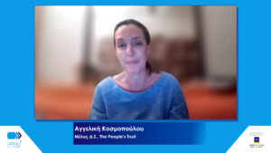 Το κοινό χαιρέτισε, ακόμα, η Δρ. Αγγελική Κοσμοπούλου, μέλος Δ.Σ., The People’s Trust η οποία με λίγα λόγια συνεχάρη τις 11 ομάδες για την προσπάθειά τους και ευχαρίστησε την ομάδα του επιταχυντή για τη νέα συνεργασία, δηλώνοντας την επιθυμία η συνεργασία αυτή να συνεχιστεί και στο μέλλον.