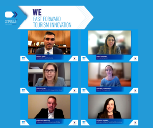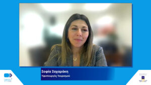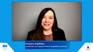 Από την πλευρά της η Υφυπουργός Τουρισμού, κα. Σοφία Ζαχαράκη, παίρνοντας τη σκυτάλη, ευχαρίστησε τόσο τον κ. Αλέξανδρο Βασιλικό για την ευκαιρία να συζητιέται η ελληνική καινοτομία και η ενσωμάτωσή της στην τουριστική εκπαίδευση, όσο και την Διευθύντρια του CapsuleT, κα. Κατερίνα Σαριδάκη για τις εκδηλώσεις του επιταχυντή και τη χαρά που δόθηκε στην ίδια να έρθει σε άμεση επαφή με τις νεοφυείς επιχειρήσεις τουρισμού. Ακόμα, η κα. Ζαχαράκη προσυπέγραψε όσα προανέφερε ο κ. Βασιλικός περί σύζευξης του πρωτογενούς & δευτερογενούς τομέα με το κομμάτι των δημιουργικών υπηρεσιών των νεοφυών επιχειρήσεων.