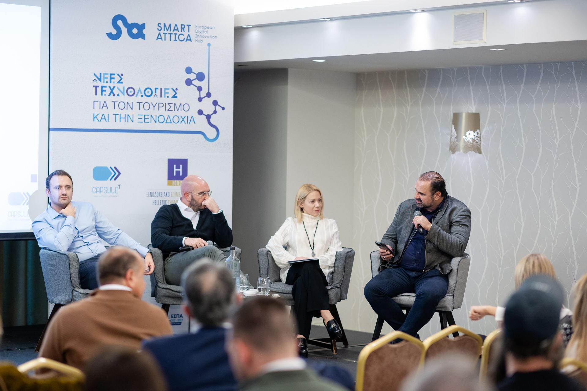 Κατά την διάρκεια έναρξης της εκδήλωσης ο πρόεδρος του ΞΕΕ κ. Αλέξανδρος Βασιλικός αναφέρθηκε στην πρωτοβουλία και στους σκοπούς της συμμετοχής του ΞΕΕ ως επίσημου συνεργάτη (partner) στο Smart Attica European Digital Innovation Hub (EDIH). Ακολούθως ο Manager του Smart Attica EDIH κ. Περικλής Τερλιξίδης ανέπτυξε τις δράσεις του European Digital Innovation Hub, ενώ η πρόεδρος του Ινστιτούτου Τουριστικών Ερευνών και Προβλέψεων κα Κωνσταντίνα Σβύνου παρουσίασε τα νέα ευρήματα της μελέτης του Ινστιτούτου αναφορικά με τις δυνατότητες Τεχνολογίας και Τεχνητής Νοημοσύνης στις ξενοδοχειακές επιχειρήσεις.