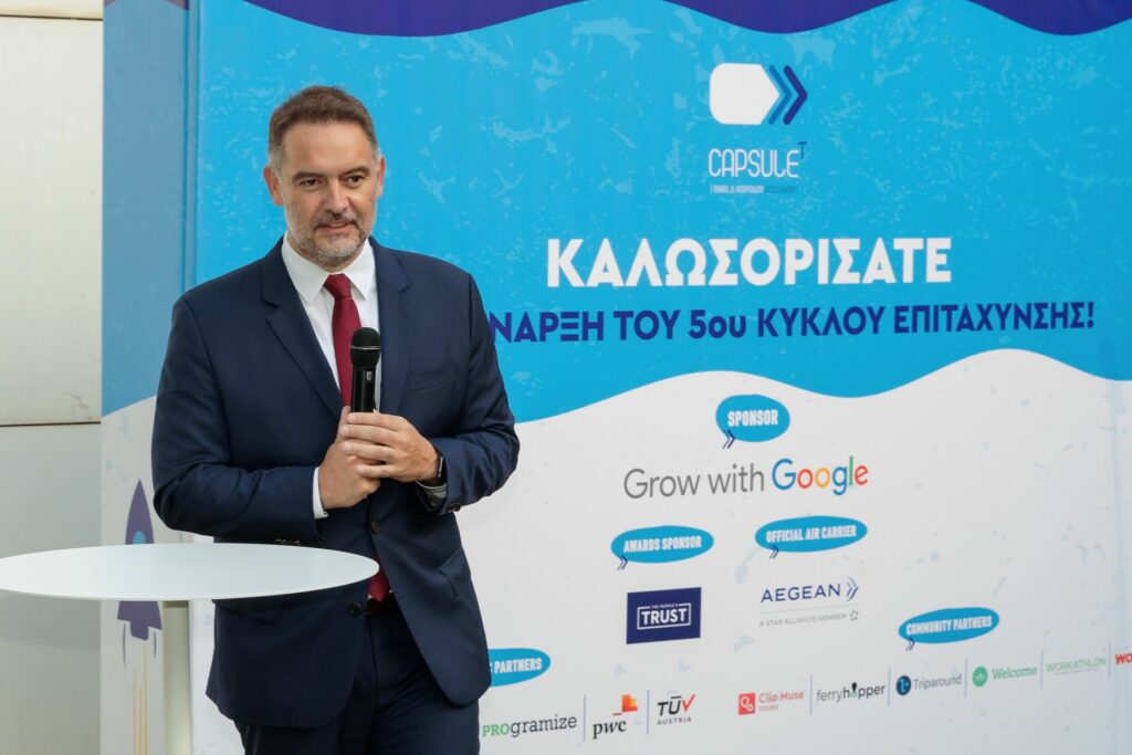 Στην εναρκτήρια εκδήλωση του 5ου κύκλου, σε ένα ξεχωριστό δια ζώσης “Welcoming Event”, που πραγματοποιήθηκε στα γραφεία του CapsuleT πρώτος καλωσόρισε τις startups επί σκηνής ο Πρόεδρος του Ξενοδοχειακού Επιμελητηρίου Ελλάδος, κ. Αλέξανδρος Βασιλικός τονίζοντας ότι : «Μέσα από αυτή την προσπάθεια νομίζω ότι το μεγαλύτερο κέρδος που υπάρχει είναι ότι έχει δημιουργηθεί ένα πολύ ισχυρό community γύρω από τις startup του ελληνικού τουρισμού. Έχουμε εξαιρετικές εταιρίες πια ως οικοσύστημα και μας δίνεται η δυνατότητα να στηρίξουμε και τις νέες ομάδες, οι οποίες βγαίνουν με πολύ ωραίες ιδέες. Αυτό πιστοποιείται και από την διεθνή διάκριση που λάβαμε το περασμένο μήνα με την ανάδειξή μας ως καλύτερο επιταχυντή της Νότιας Ευρώπης». Παράλληλα, ευχαρίστησε τόσο την ομάδα του CapsuleT όσο και τα μέλη του Δ.Σ. του Ξενοδοχειακού Επιμελητηρίου Ελλάδος, αλλά και τους χορηγούς του νέου κύκλου για την προσφορά τους.